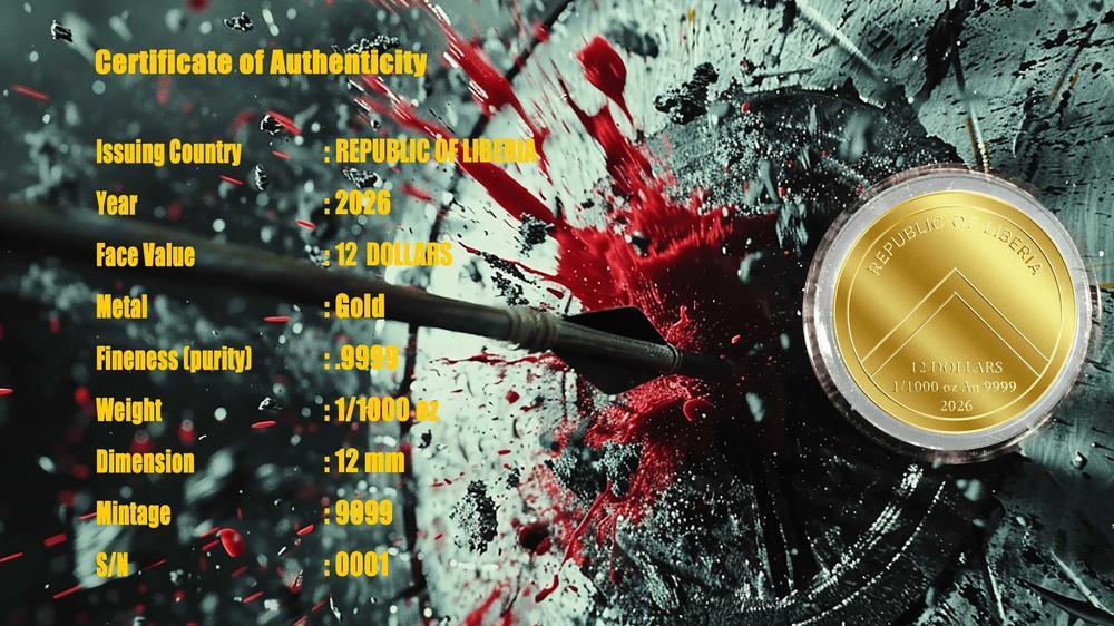 這枚威力強大的1/1000盎司金幣,旨在致敬傳奇的斯巴達勇士,他是紀律、力量和犧牲精神的永恆象徵。頭盔、盾牌和寶劍以簡潔有力的設計呈現,令人聯想到古代戰爭的榮耀。金幣裝於卡片中,並附有真品證書。全球限量發行9999枚!